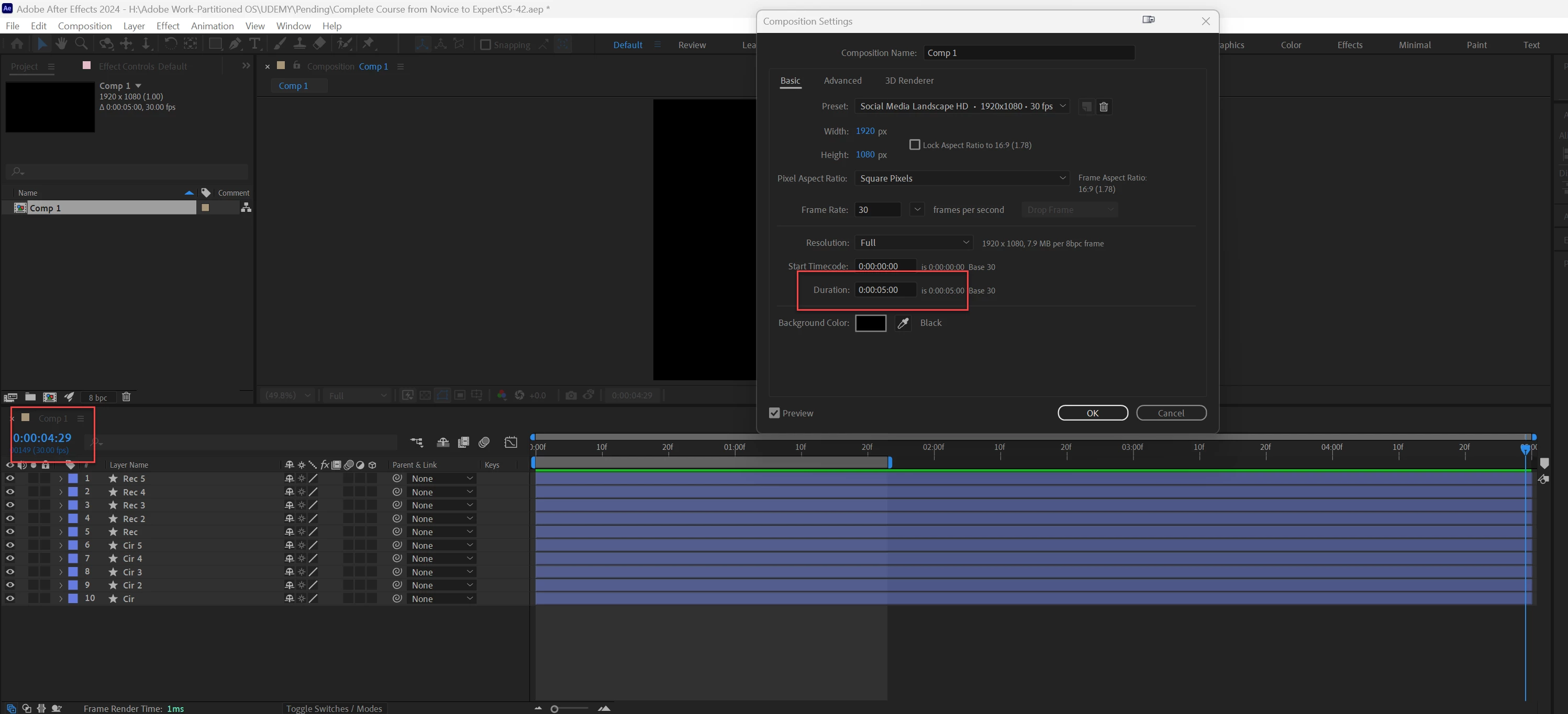 Comp Setting/Timeline Duration