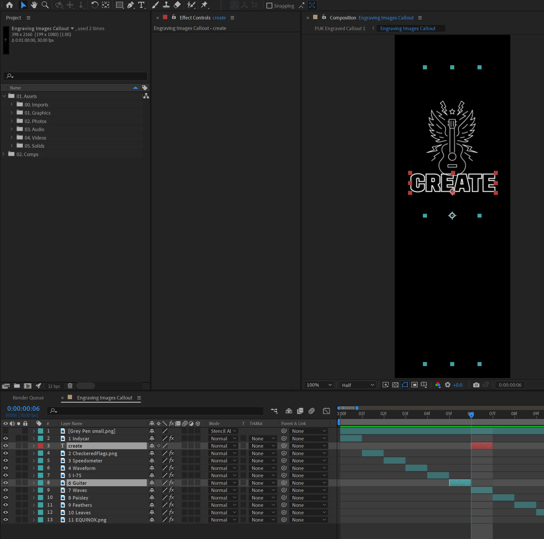Hi, I've got an odd situation, I think. As I understand the timeline, the Comp viewer should display what's immediately to the right of the playhead. I have a stack of images, each one frame long, staggered by 1 frame one after the other. When I'm on Frame 0, the first layer (Indycar) displays as expected. When I move to frame 1, nothing displays, though there is an layer at that time in the comp (see attached, look at layer "2 CheckeredFlags.png"). When I move to frame 2, the Checkered Flag layer displays, though it only exists on frame 1. In my screenshot, at frame 6, you'll see I have selected the "Create" text layer, and the "Guitar" layer. Both are displayed at the same time, despite existing on frames 6 and 5 respectively.