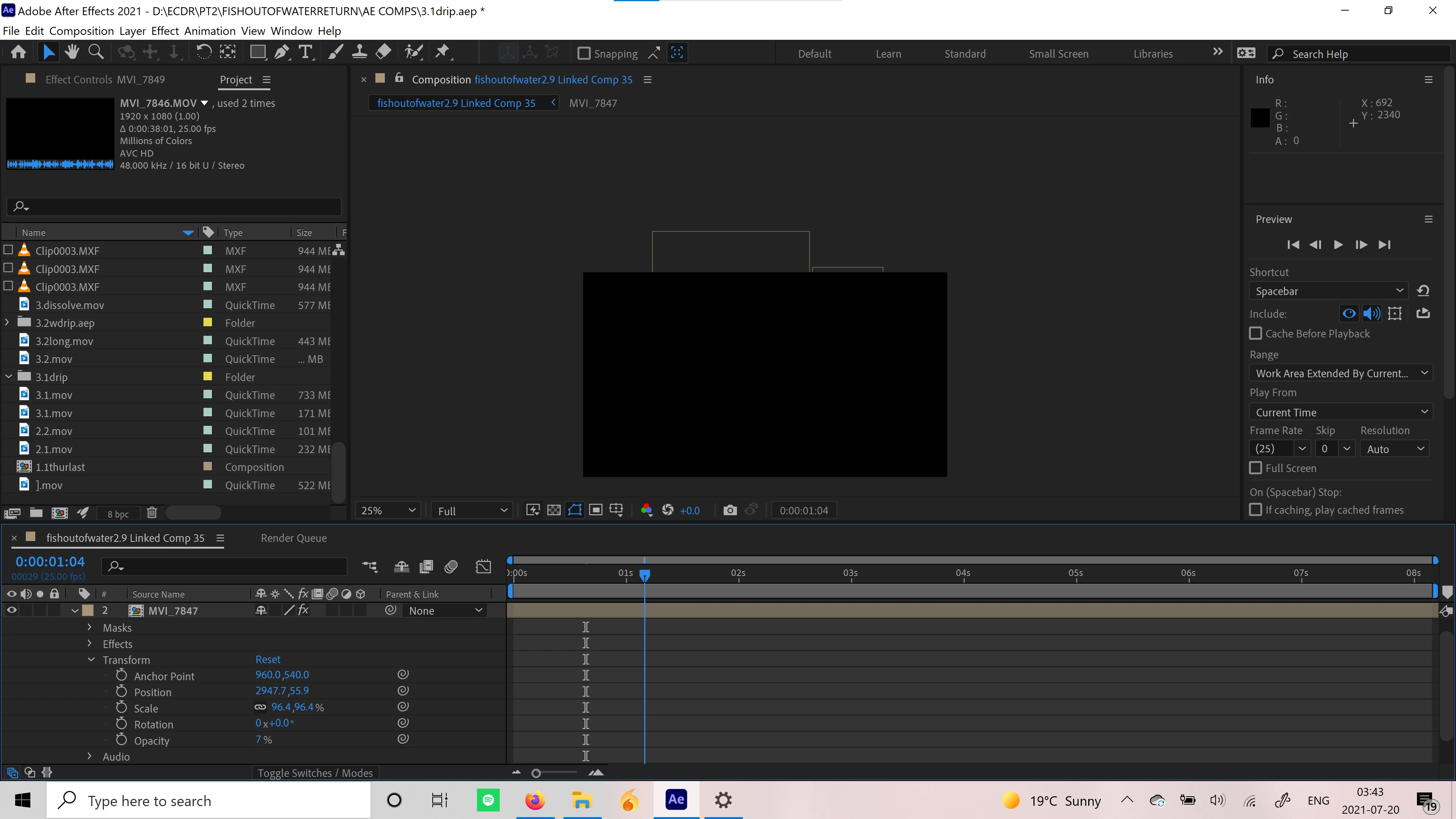 Hey, I was in the middle of fixing some old compositions from 2019. I got through four with no problem, but then I wanted to fix something in the first composition I worked on and went back the preview stopped working. It doesn't work for any of the compositions, in any of the work spaces.