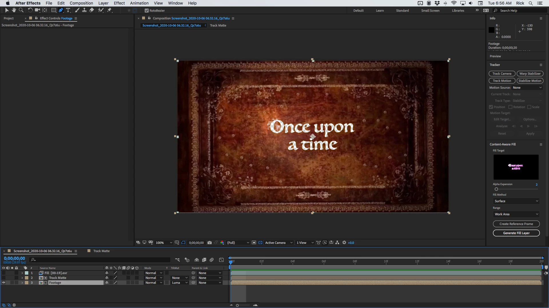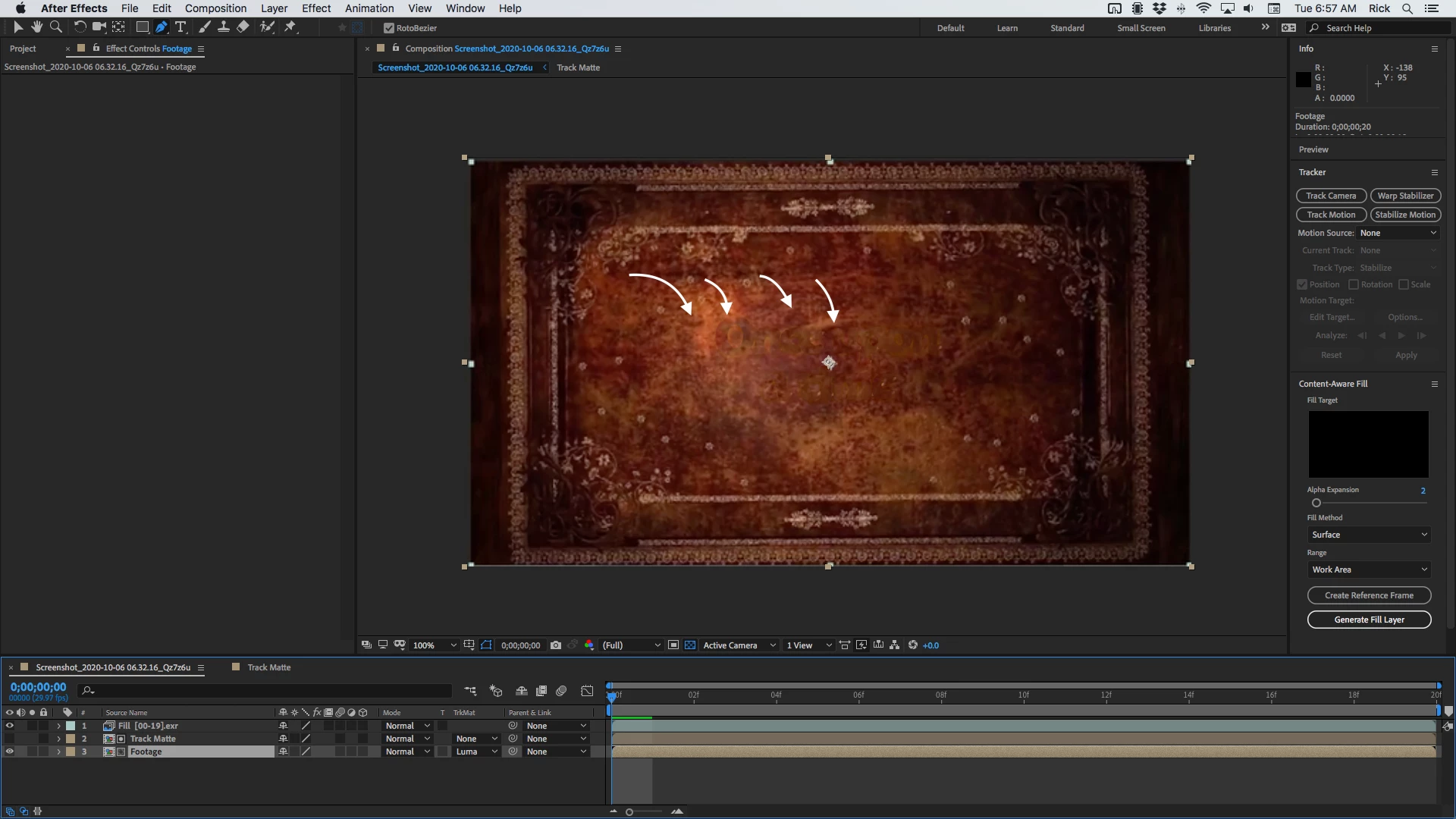 I'm having some trouble with Content Aware Fill in After Effects 2020.