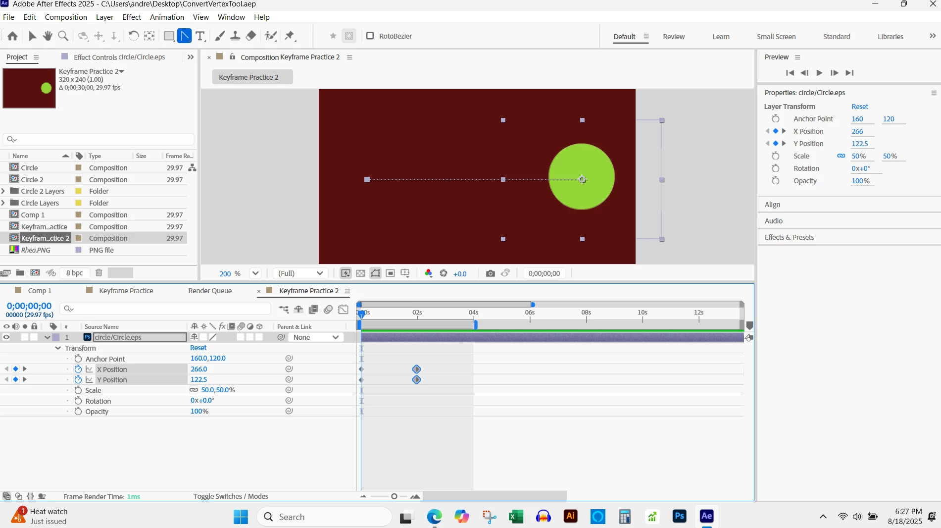 I am learning to use the Convert Vertex tool in AE but its just not working. The pen tool work just fine and shows the pen icon but when I selet the convert vertex to just uses the normal mouse pointer. I've made sure to select the keyframes but still nothing. What could it be? Thank you!