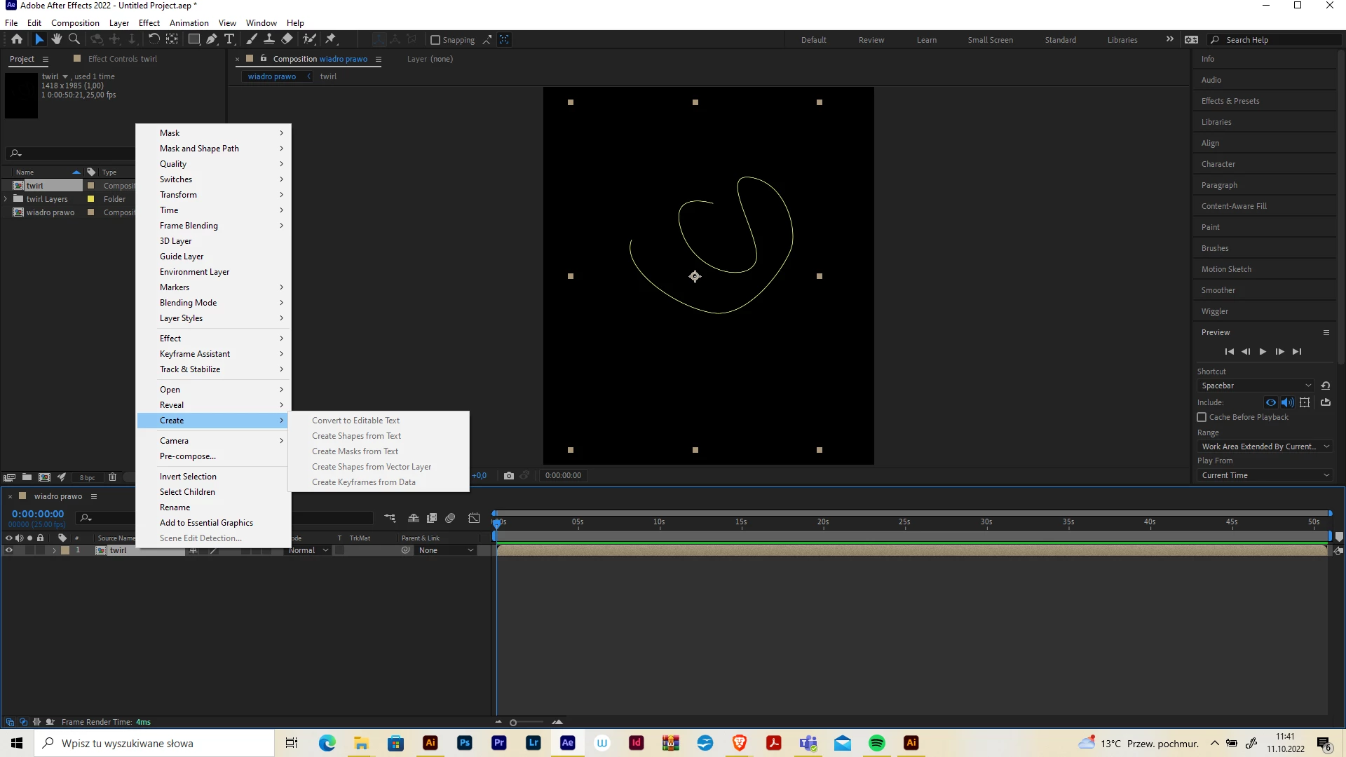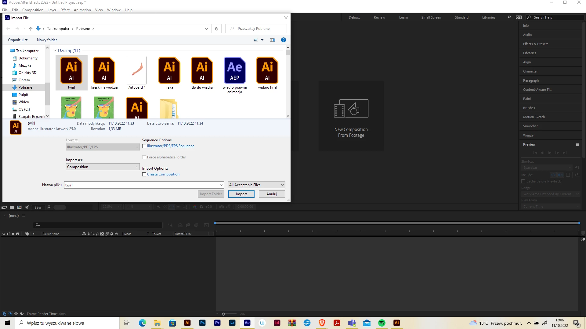 AE can only Create Shape Layers from a selected AI file in the Timeline. Anything else will not work since the related menu item will be greyed out. HTH