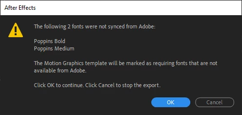 Unfortunately, whenever I export the templates I get an error that the fonts selected were not synced from Adobe.
