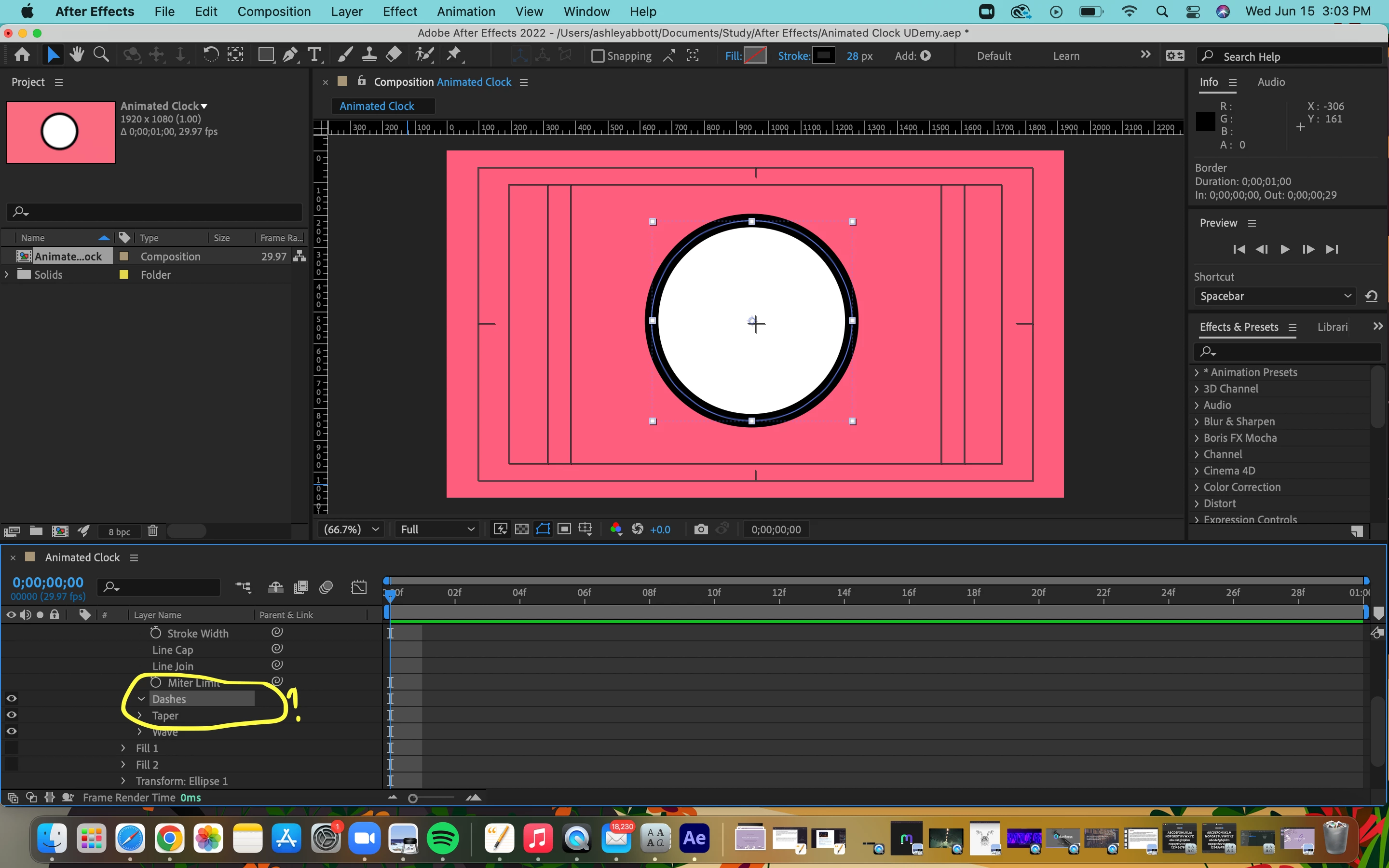 Hi everyone! Im currently trying to use the "dashes" tool in my shape layer in after effects to create dashes in a circle. For some reason it is not letting me use it, the "+" and "-" icon are not visible. Ive tried reseting my workspace and backtracking any changes ive made but have not yet come up with a solution, does anybody know how to fix this? Any help I can get would be greatly appreciated!