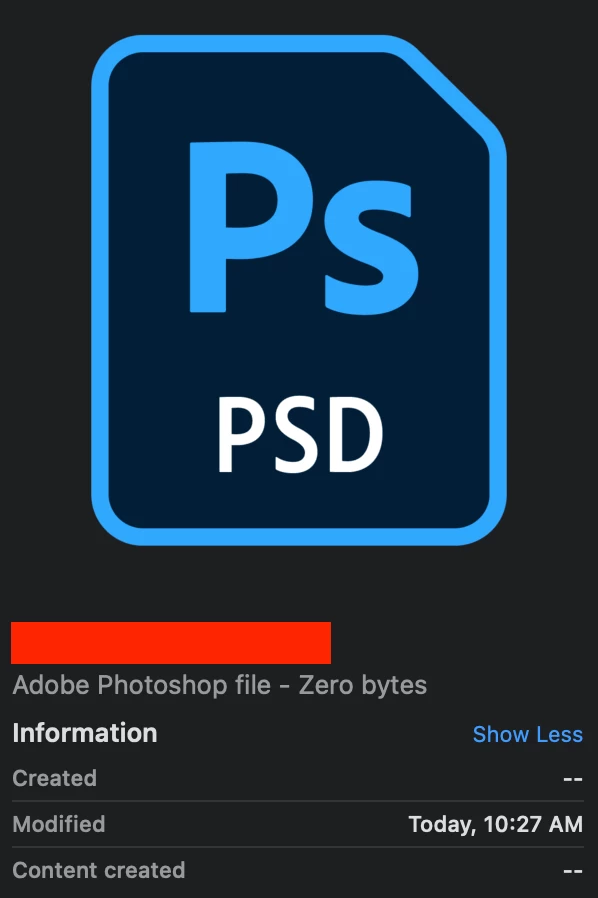 Here is a .psd file found after hitting "collect..." in the compiled assets folder, "Adobe Photoshop file - Zero bytes." When trying to open those assets I recieve a "Could not open because the file is empty" error message.