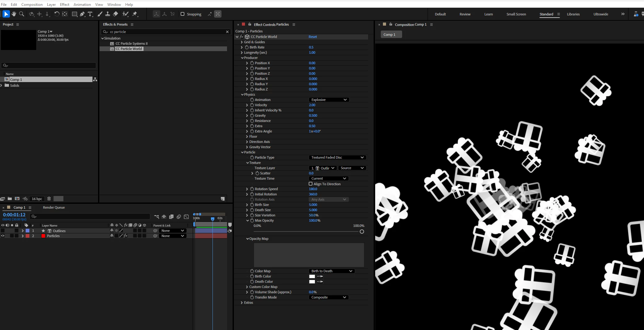 Deutschsprachiges After Effects 3D Animation mit Particle World Geschenke fliegen durch Luft