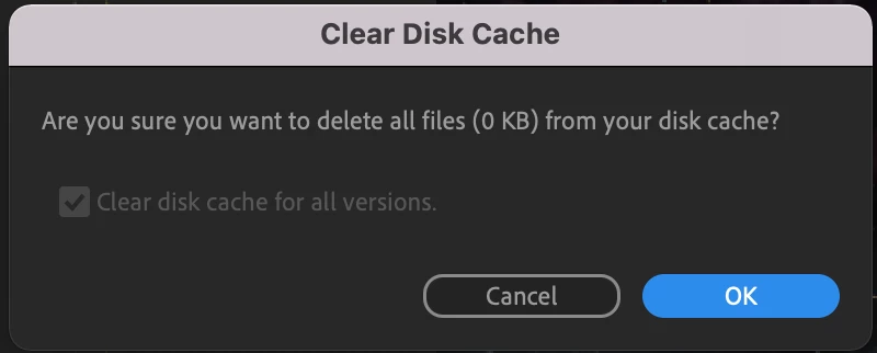 "Are you sure you want to delete all files (0kb) from your disk cache"