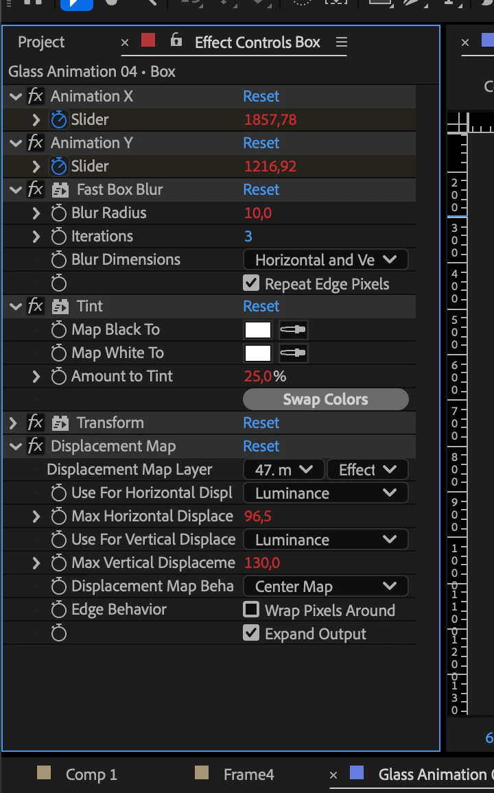 I want to add the displacement to the box but when I move the precomp, the displacement stays in the same place.