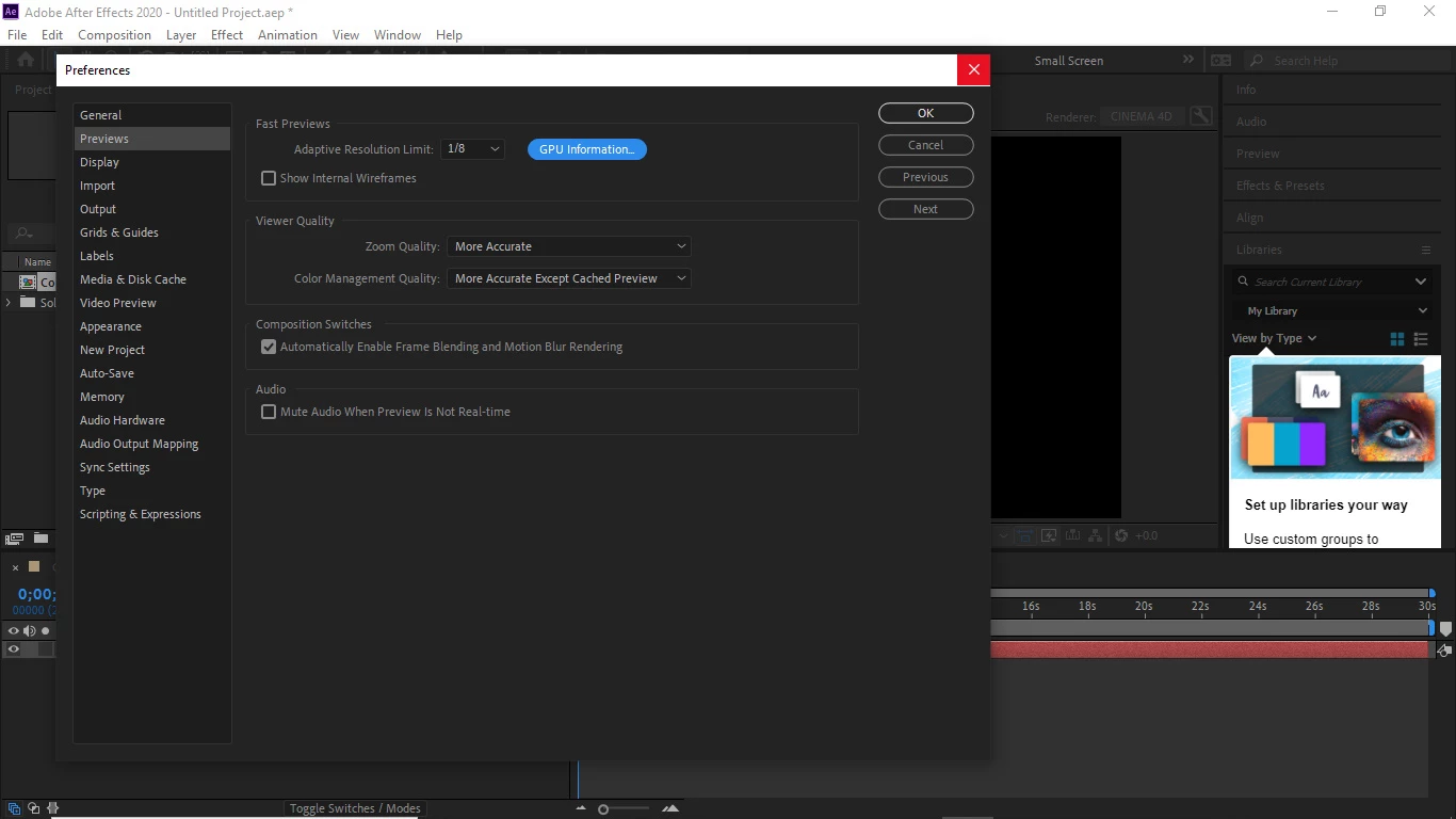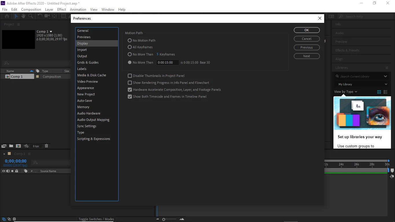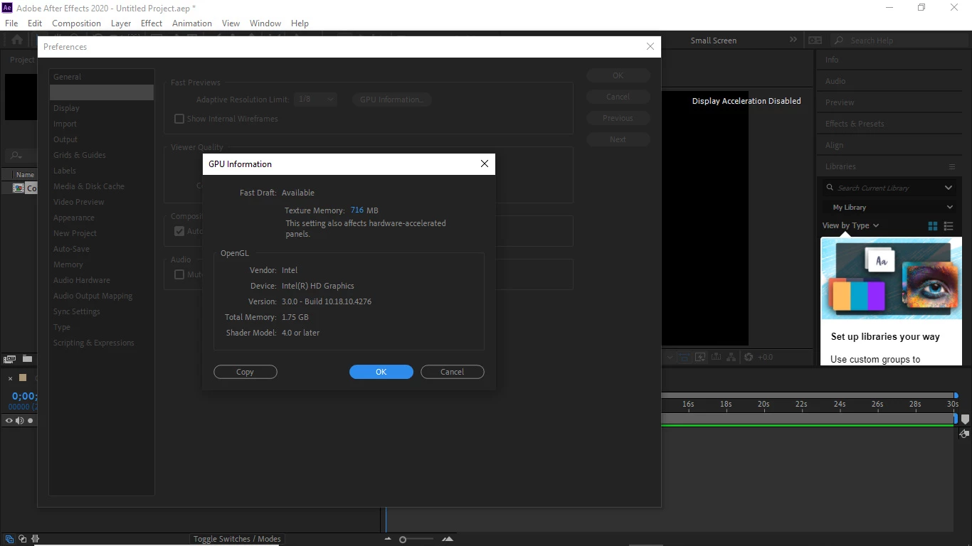 After Effects is Displaying error message on screen "Display Acceleration Disabled"