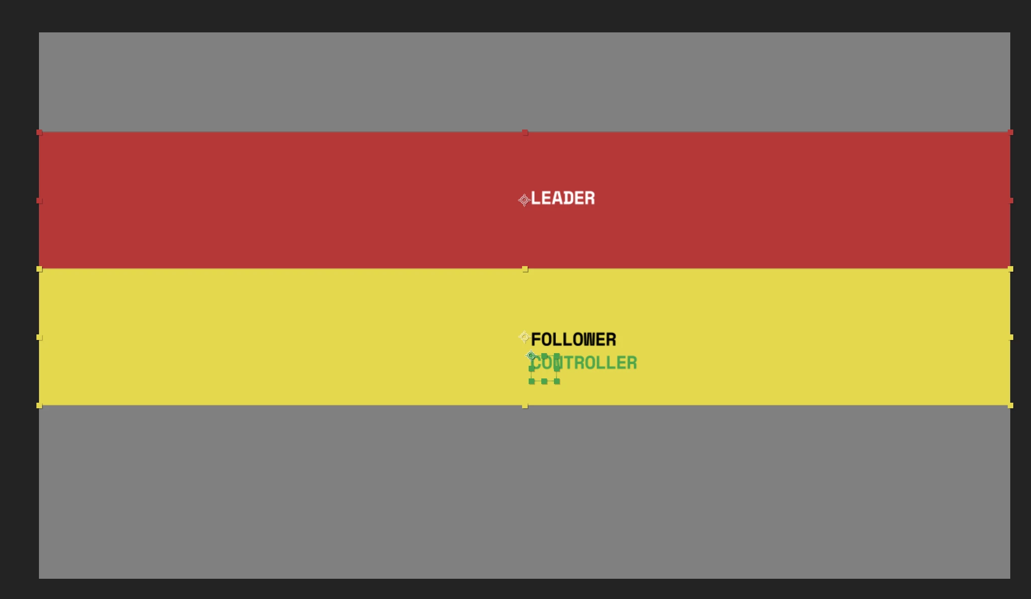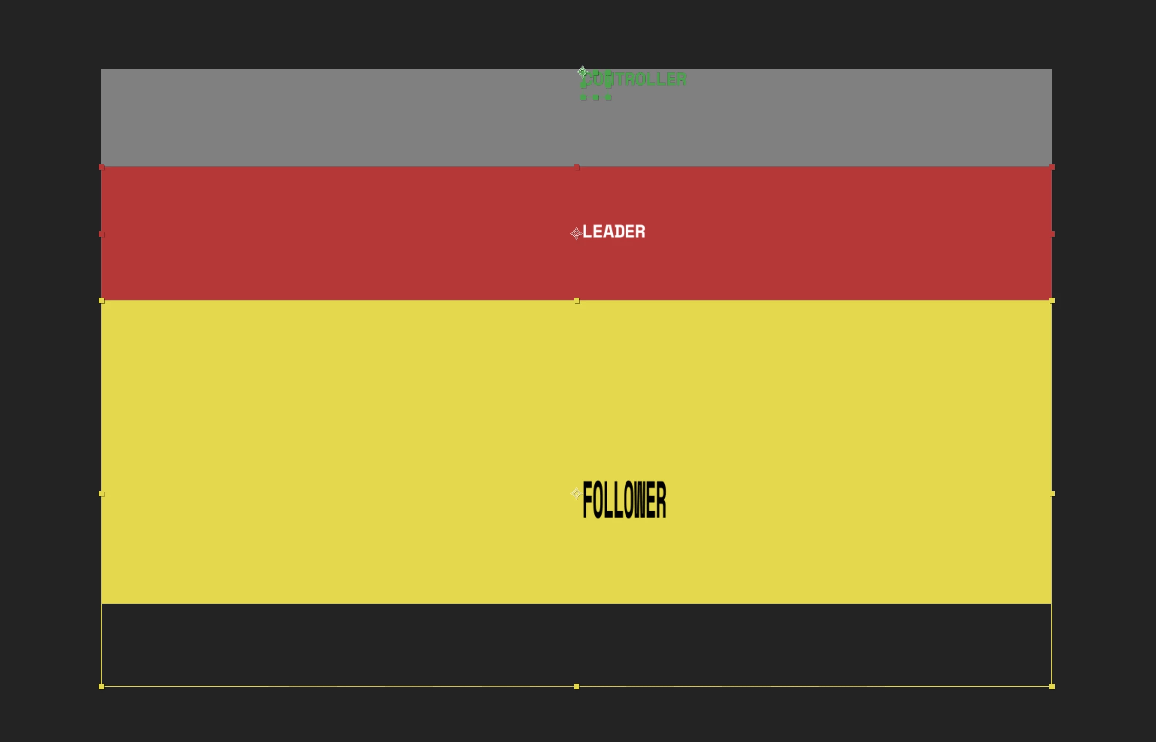When the first rectange (leader) scales up, the neighboring rectangle (follower) changes position based on leader's scale. However, when the controller approaches the follower, no scale change occurs. The controller does affect the follower's scale when at the top of the comp. My question is: why does the controller not affect the follower's scale at the appropriate position? Additionally, how can I have a series of rectangles each respond to the controller (for scale) and their neighbors (for position)?