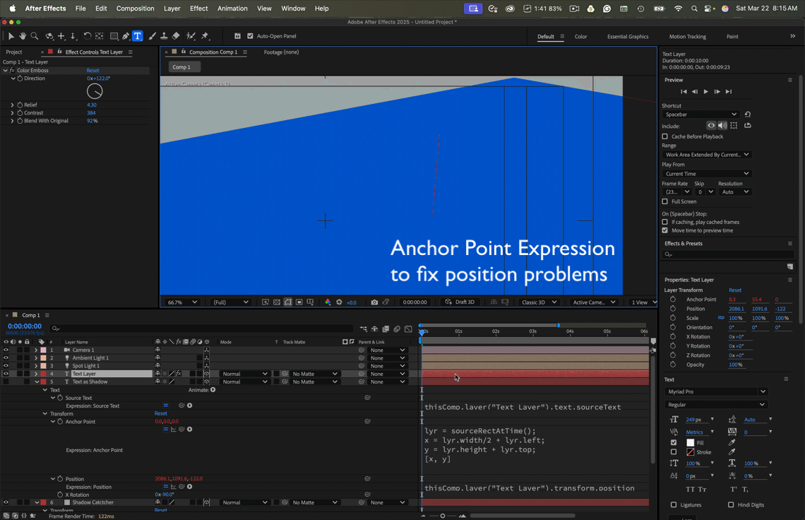 One more note: I almost always use Anchor Point expressions on 3D text layers. They make finding the bottom of a text layer perfectly accurate.