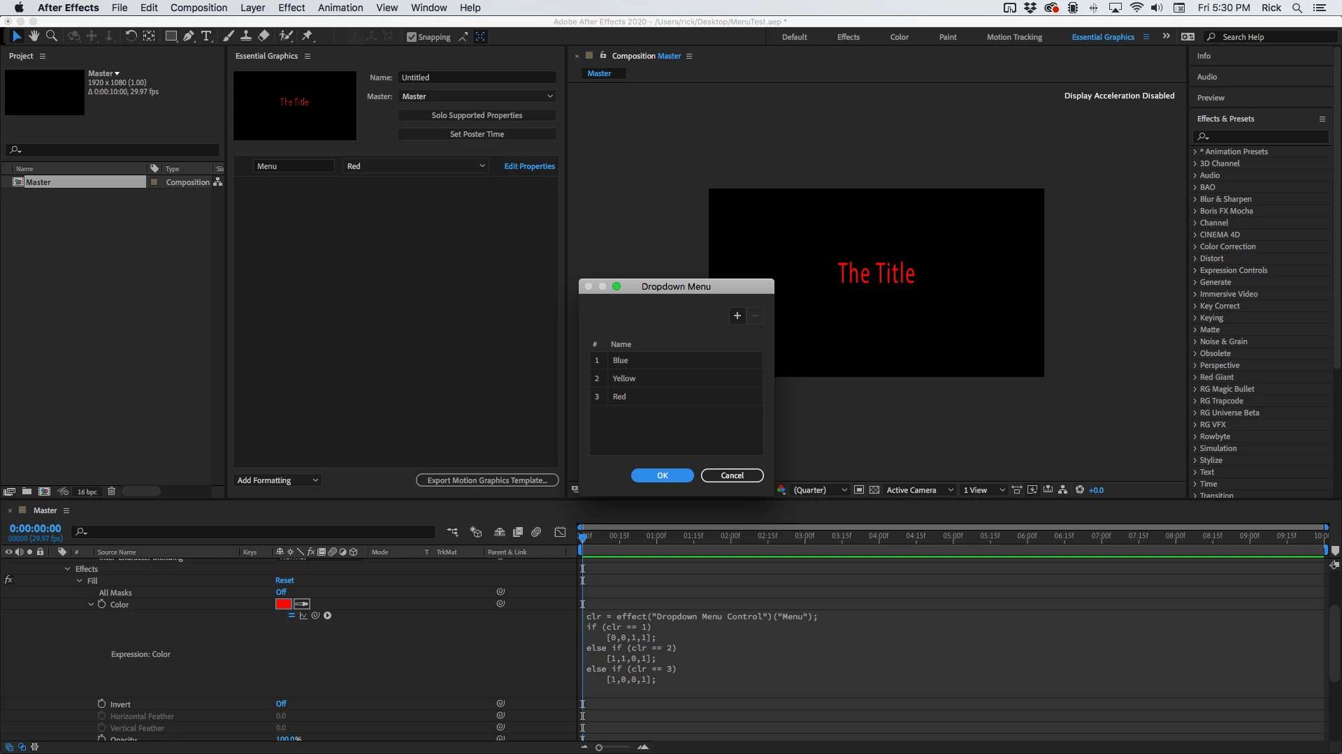 When I add more options to the dropdown menu by editing it's properties, the menu is removed from the Essential Graphics template and I have to drag it on again. This resets all of the images in the comps I've used the template in to the default image, so it's a pain to add new image options.