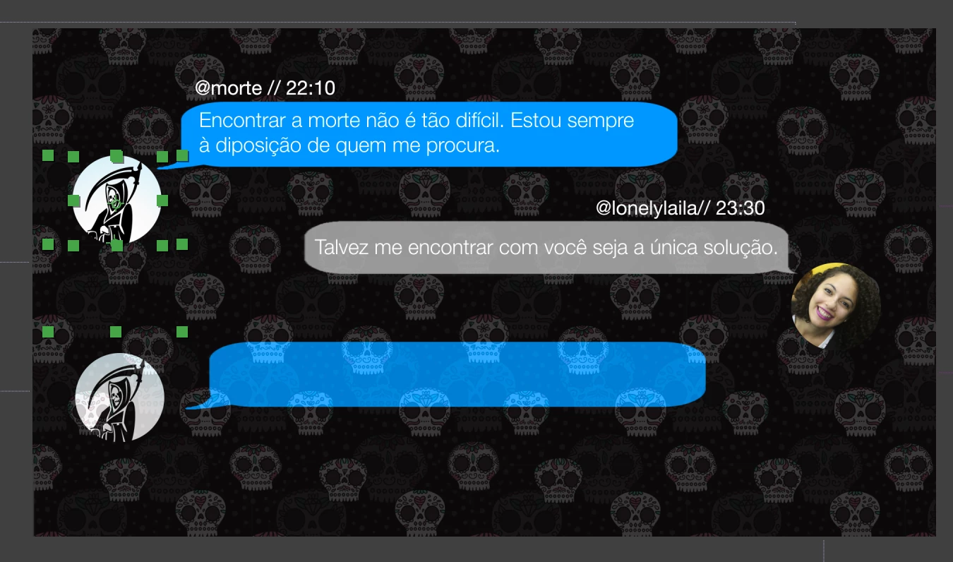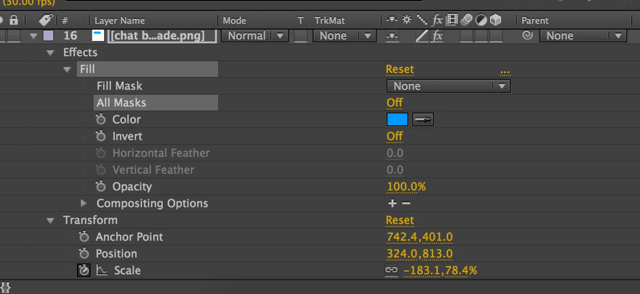 I've been able to make two chat bubbles so far, complete with the typing effect. However now that I want to make a third response (of the person who has the grim reaper as his display image), I've tried duplicating the layers from his first message, and dragging them to the bottom of the composition list, and changing them along the timeline. However they keep coming up as slightly transparent, which makes it hard to read the text. I've already checked their opacity levels and they're all at 100%. I'm not sure what I'm doing wrong. I've tried even filling them (Effect - Generate - Fill) but it's the same transparent effect.
