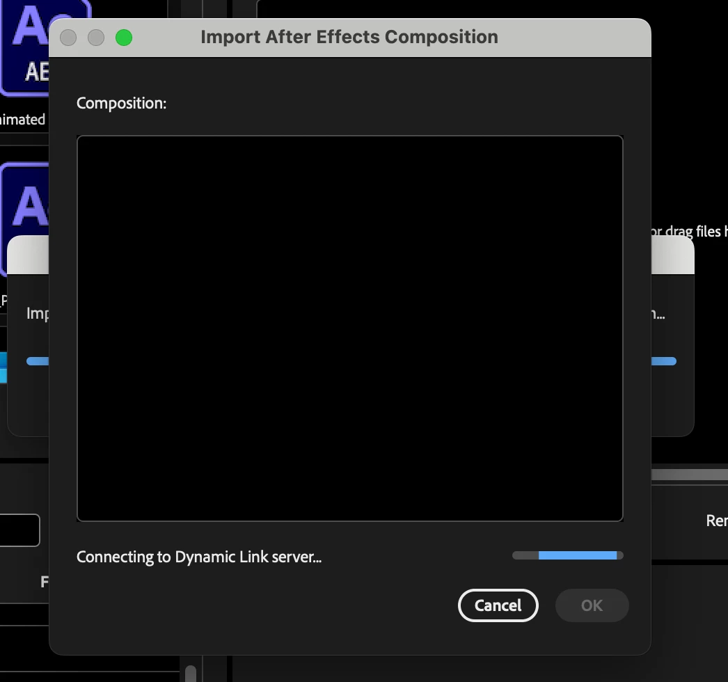 I'm trying to export a file from After Effects to Media Encoder, but nothing works. It says - Connecting to Dynamic link server