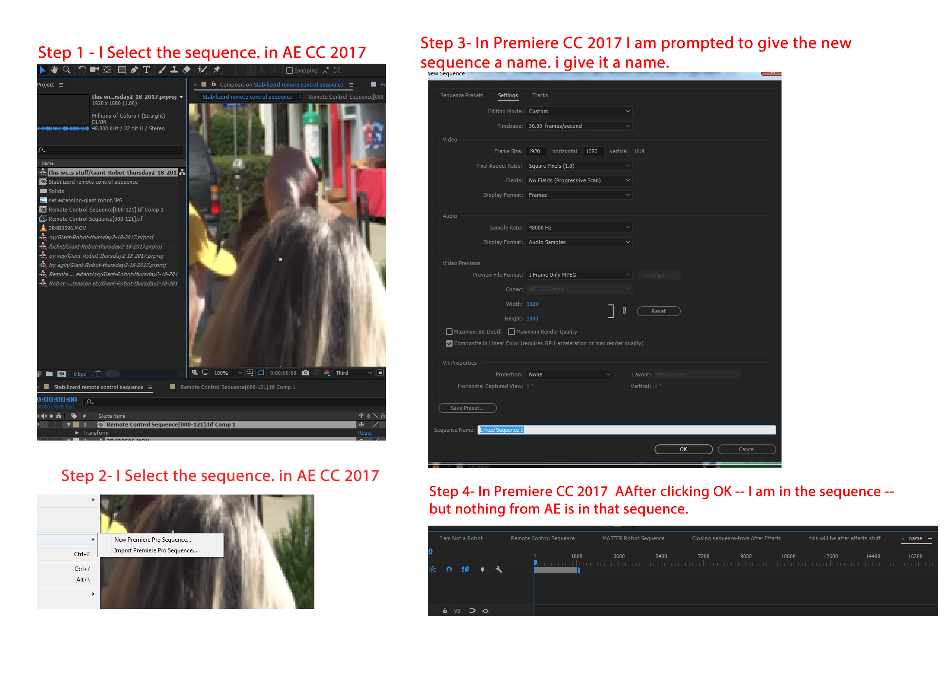 If you choose Fine>Dynamic Link>New Premiere Pro Sequence what you end up with new footage in the After Effects Project. This footage is an empty Sequence that opens in your existing or a new Premiere Pro Project. You can then add any media you have in the Premiere Pro Project and edit the sequence into something that can be used in After Effects. That new sequence will be dynamically linked back to After Effects and treated as any other media asset in After Effects. The original media (footage) used in the Sequence will not be imported or available in the After Effects Project. For me, this feature has very limited usefulness because there is no way to adjust any of the timing inside AE, you have to go back to Premiere Pro. I see a couple of situations where this is an efficient workflow. I probably use this feature about once a year to pull in an edited sequence where I am cleaning up an audio track or finding a specific part of a very long shot. I will also use the feature occasionally when I want to apply a specific effect to sequence of several shots. This is the only way to get an edited sequence into After Effects as footage without having to render.