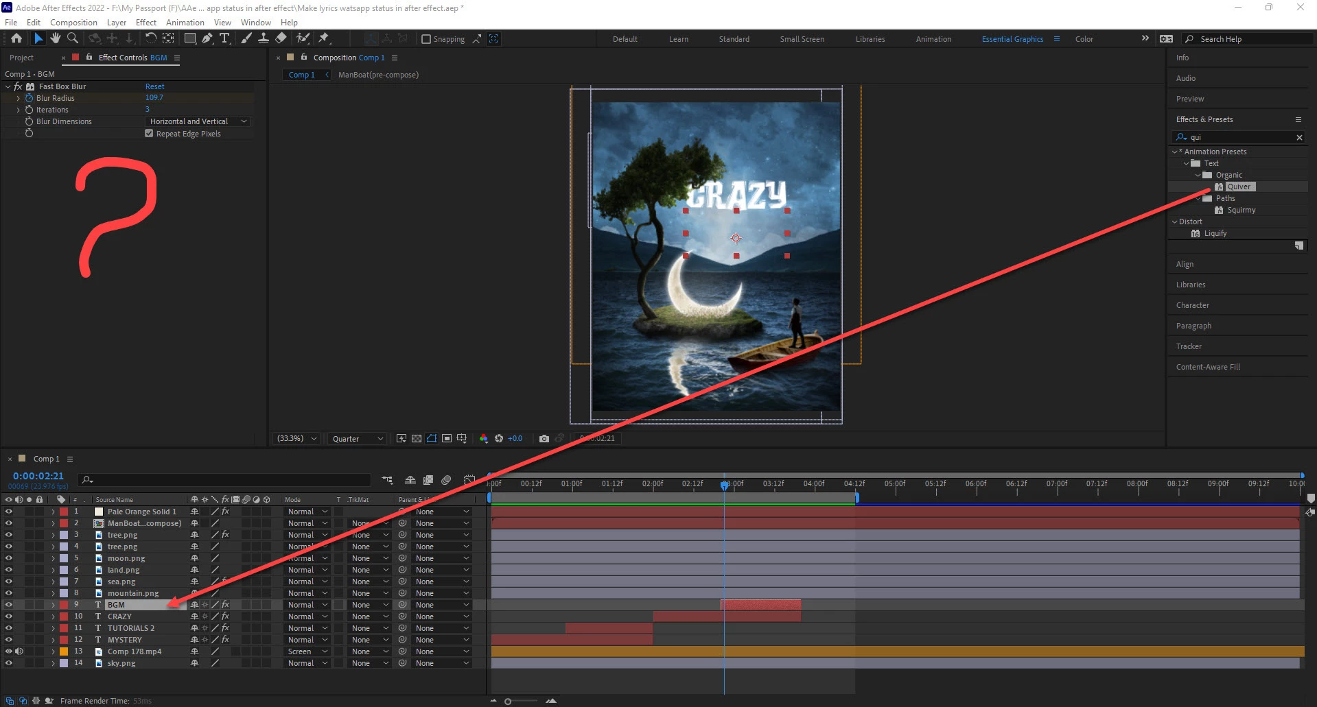 Everything under the "Animation Presets" in the Effects & Presets panel is preset. Quiver is one of them.