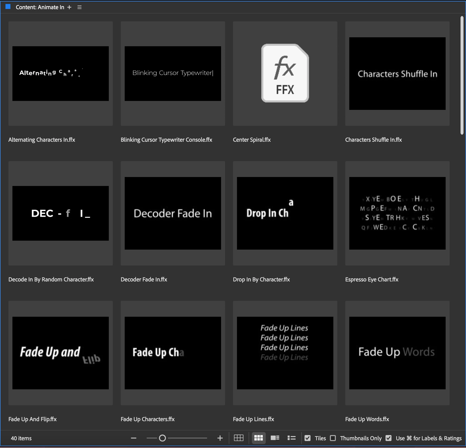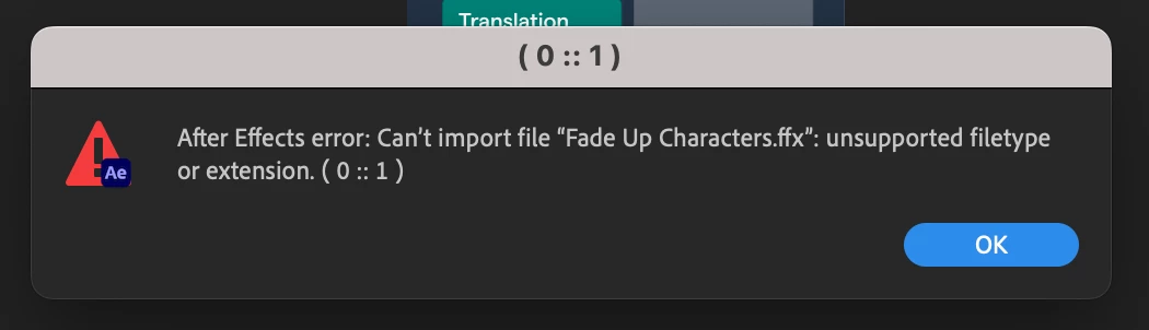 I am fairly new to After Effects, and have just watched the Adobe tutorial on animating with text presets on the text panel. However mine seem to be missing, and when I try to import from Bridge, (where they all seem to be) I get this error message... could any one advise?