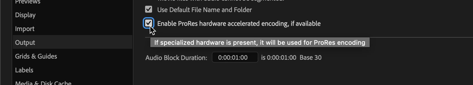 First off, Adobe, how about removing the "ifs" and instead only enable this option if hardware accelerated encoding is available? Is ProRes hardware encoding available on this computer? I don't know, but After Effects knows.