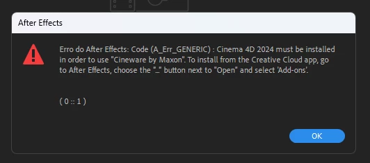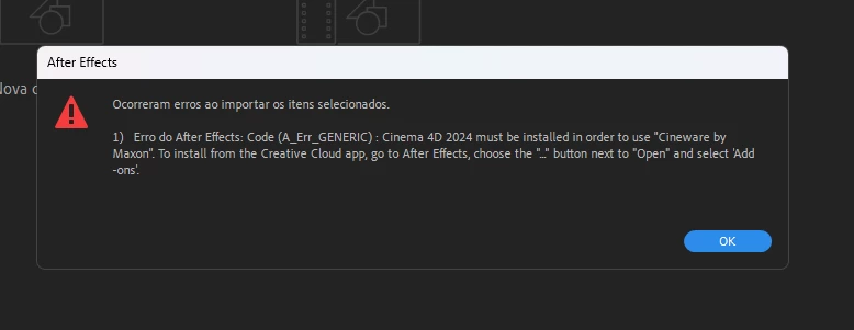 O problema ocorre ao tentar importar um arquivo do Cinema4D e ao tentar criar um pelo After Effects, o complemento do Cinema4D ja está instalado no After Effects, mas eu não consigo Instalar o App da Maxon.