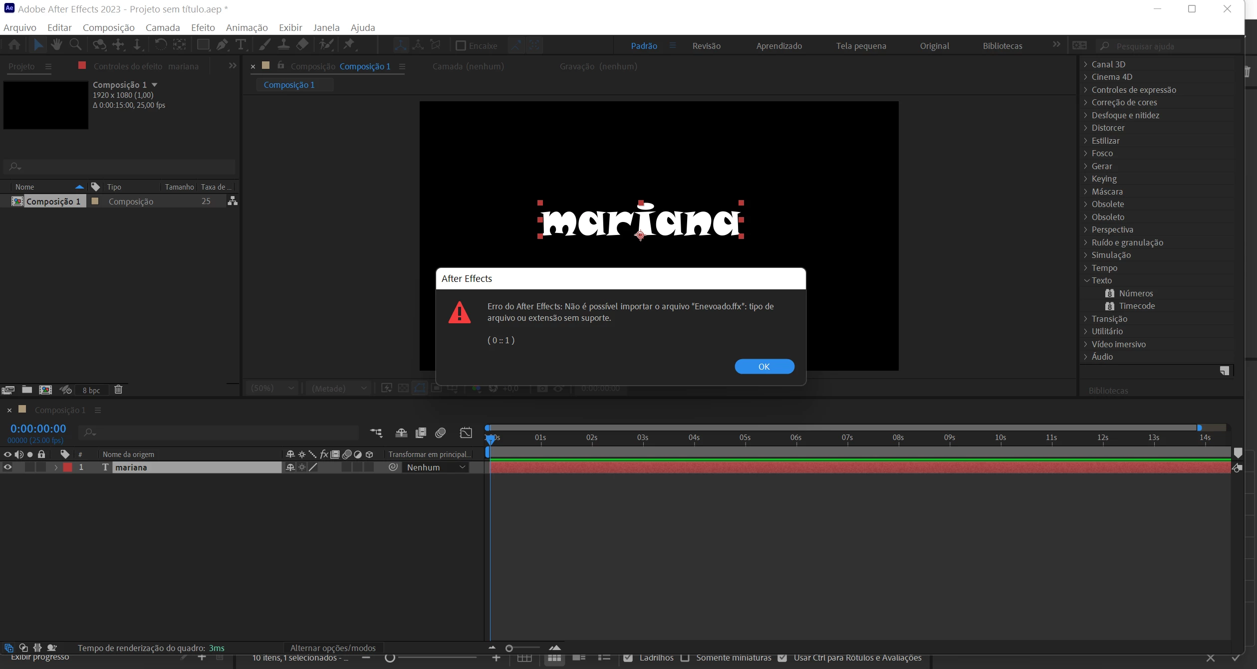 Aguém ja´apresentou este erro quando vai utilizar um dos presets nativos do after?