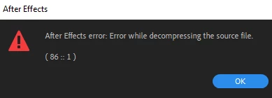 Error: AE decompressing source file/damaged or unsupported