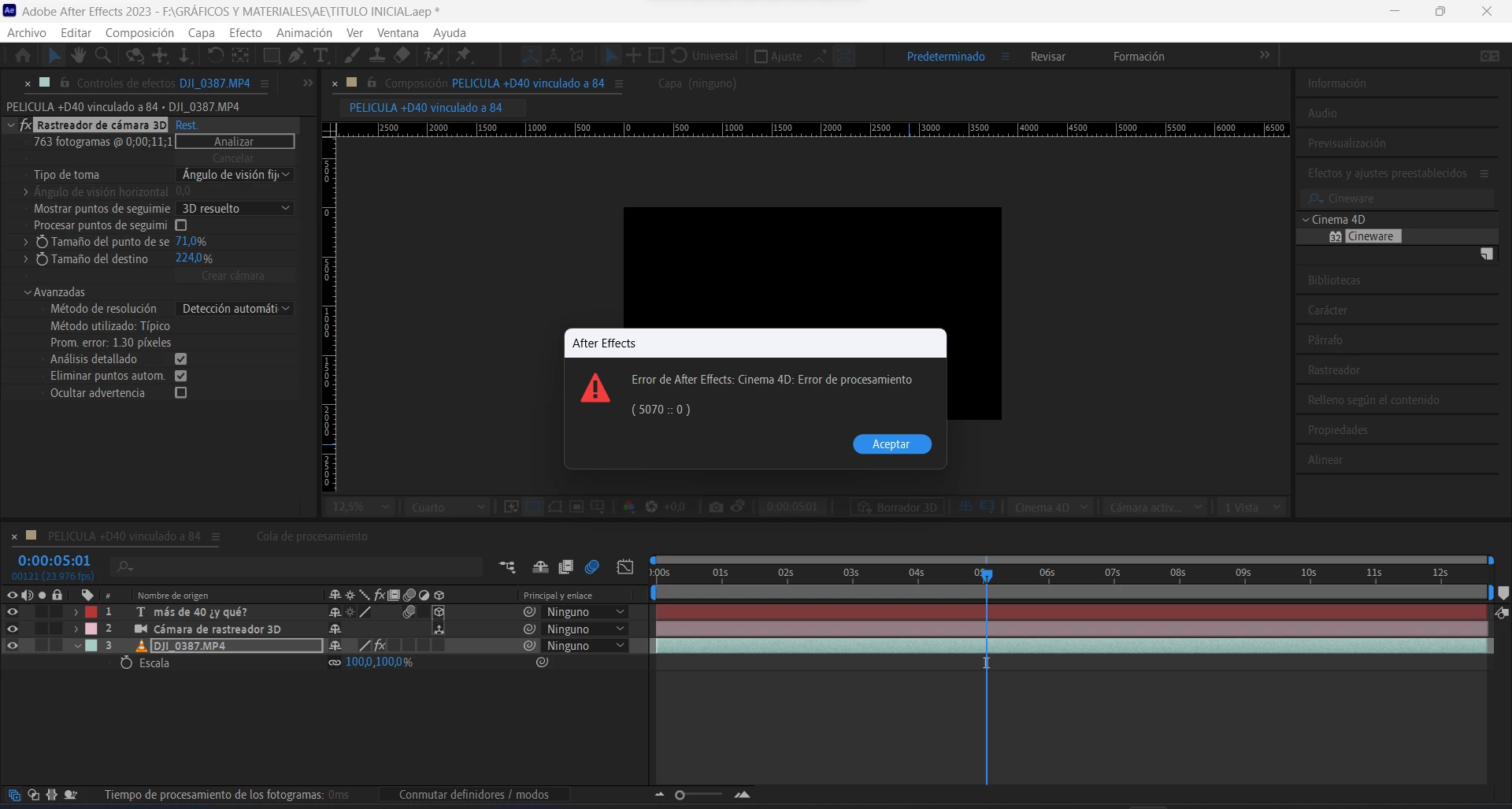 Error de after effects cinema 4d error de procesamiento 5070 :: 0