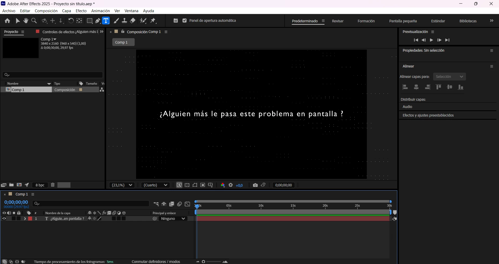 Error en espacio de trabajo en after effects