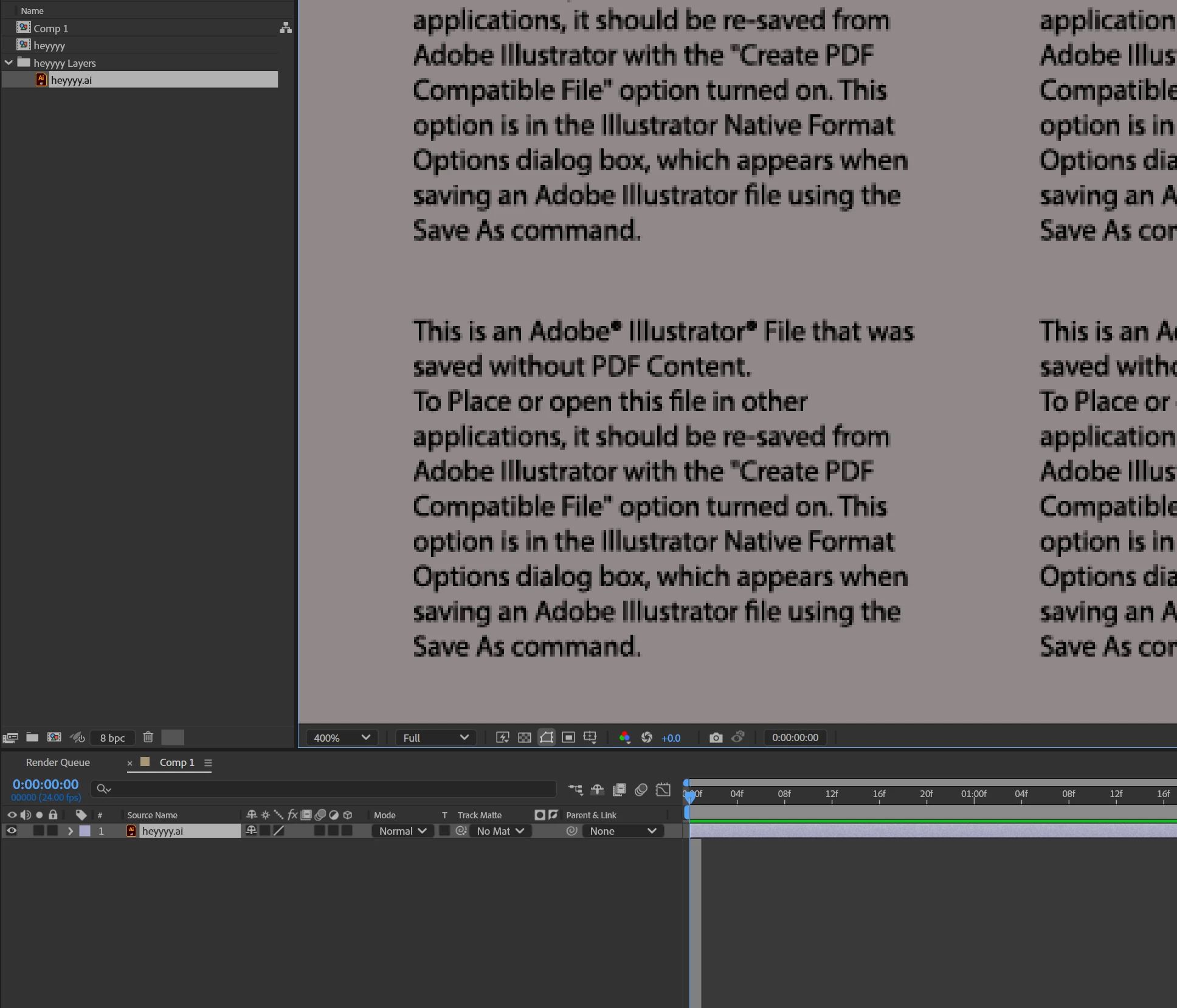 Error importing AI to AE: "this is an AI file that was saved without PDF content"