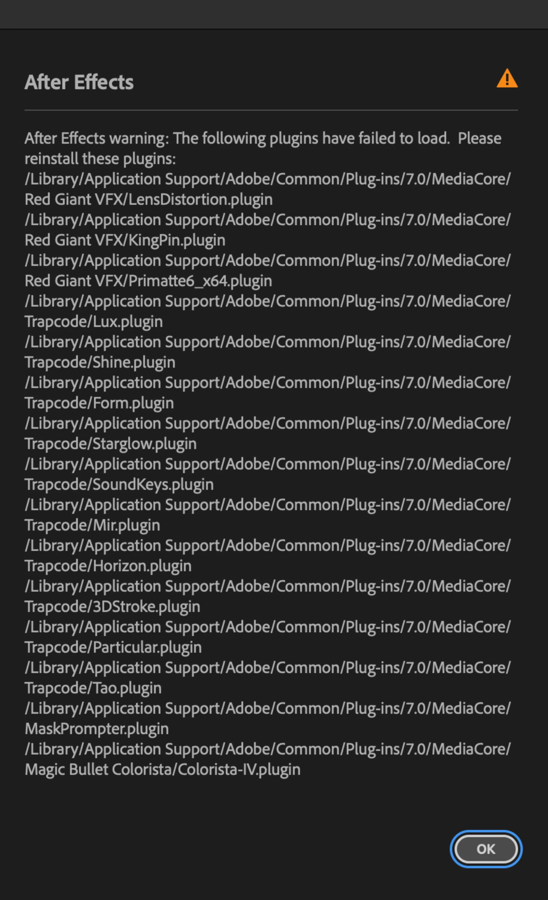 I have this error. So, I reinstall the Maxon and Redgiant. I've updated all things - After Effects, Maxon and my Mac. But, I still can't figure out how I can resolve this problem. Does anyone have the same issue as me and have any solution?