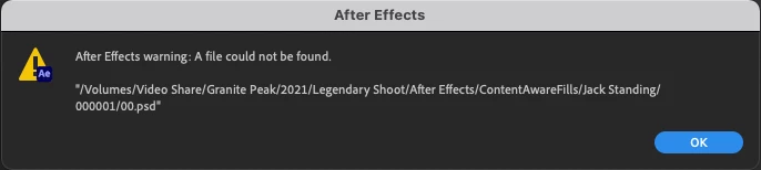 So I'm trying to use Content Aware Fill in After Effects and every time I try to create a reference frame I get this error message: