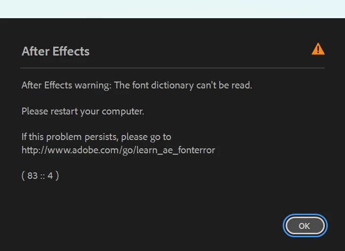 Everytime I try to add font to After Effects after the 2025 update - it crashes and I get this error message.