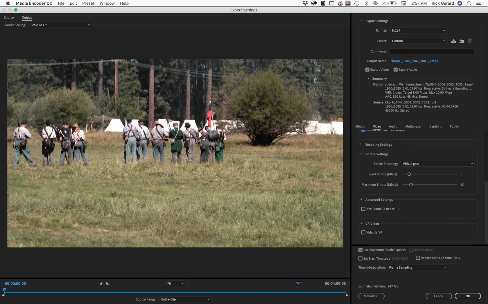 3. Reset rendering to VBR 2 Pass and change the bit rate to 8 and 10