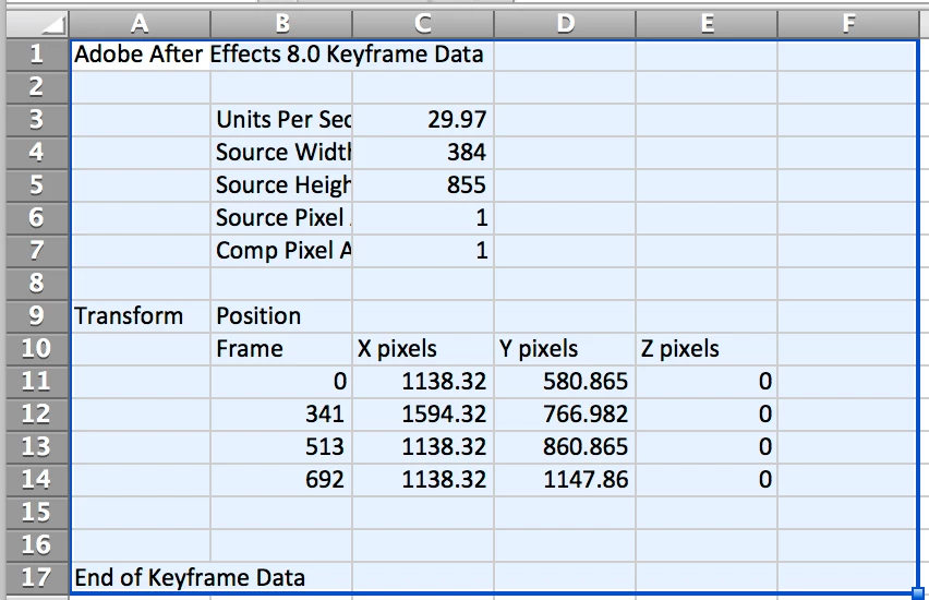 I'm planning to record some footage of users interacting with a physical product (not software). The users are asked to hold the product fairly steady, but I need to track their movements (camera position and angle is fixed). I plan to put 3-4 small points on the product visible to a camera. I'm hoping After Effects can help track those points and export some usable information in eg. csv or some other excel friendly format. It could be the position of the points relative to each other or a fixed point in space, or the distance between the points. If I get the data I can calculate what I need from there.