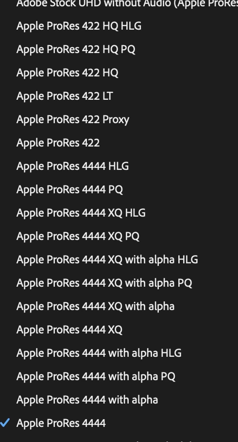 ProRes 4444:High quality, suitable for 4:4:4 sources and for retaining alpha channels when working with animations from After Effects or Motion.