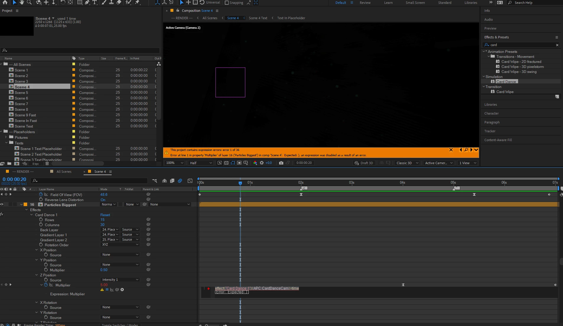 I made a video last year with a template with Card Dance effect, and recently I had to edit the file again, so I opened it, but the expression was wrong. I don't know the cause...