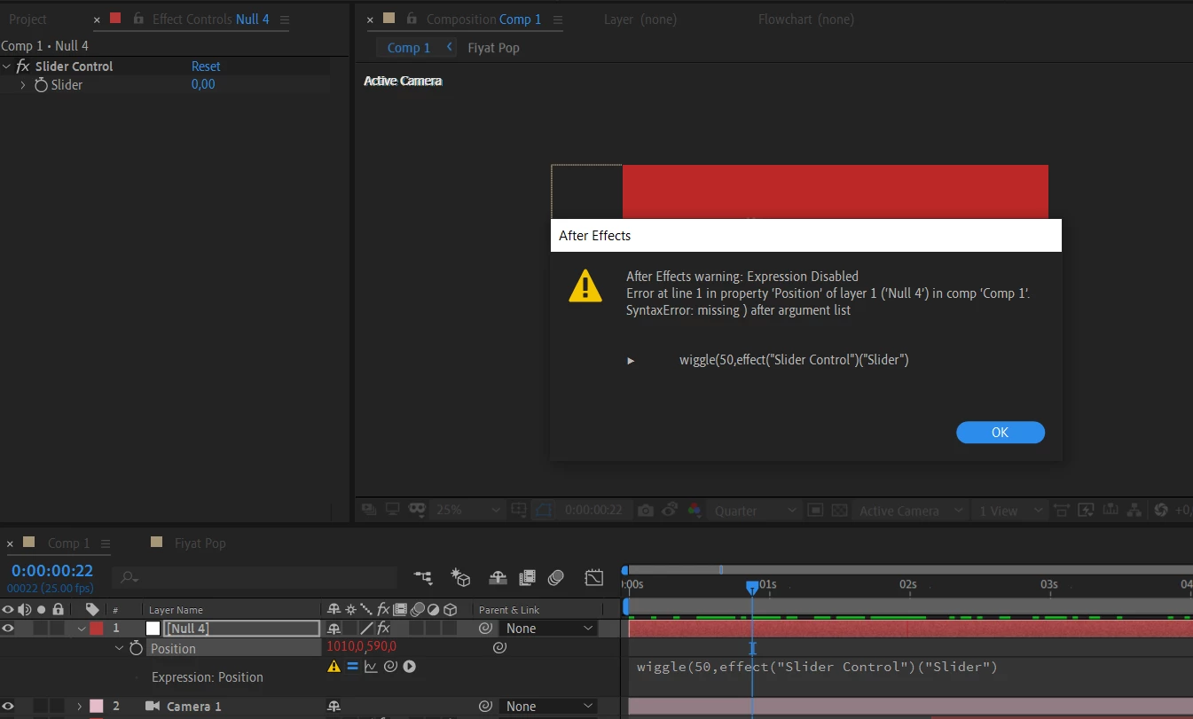 Expression slider control error