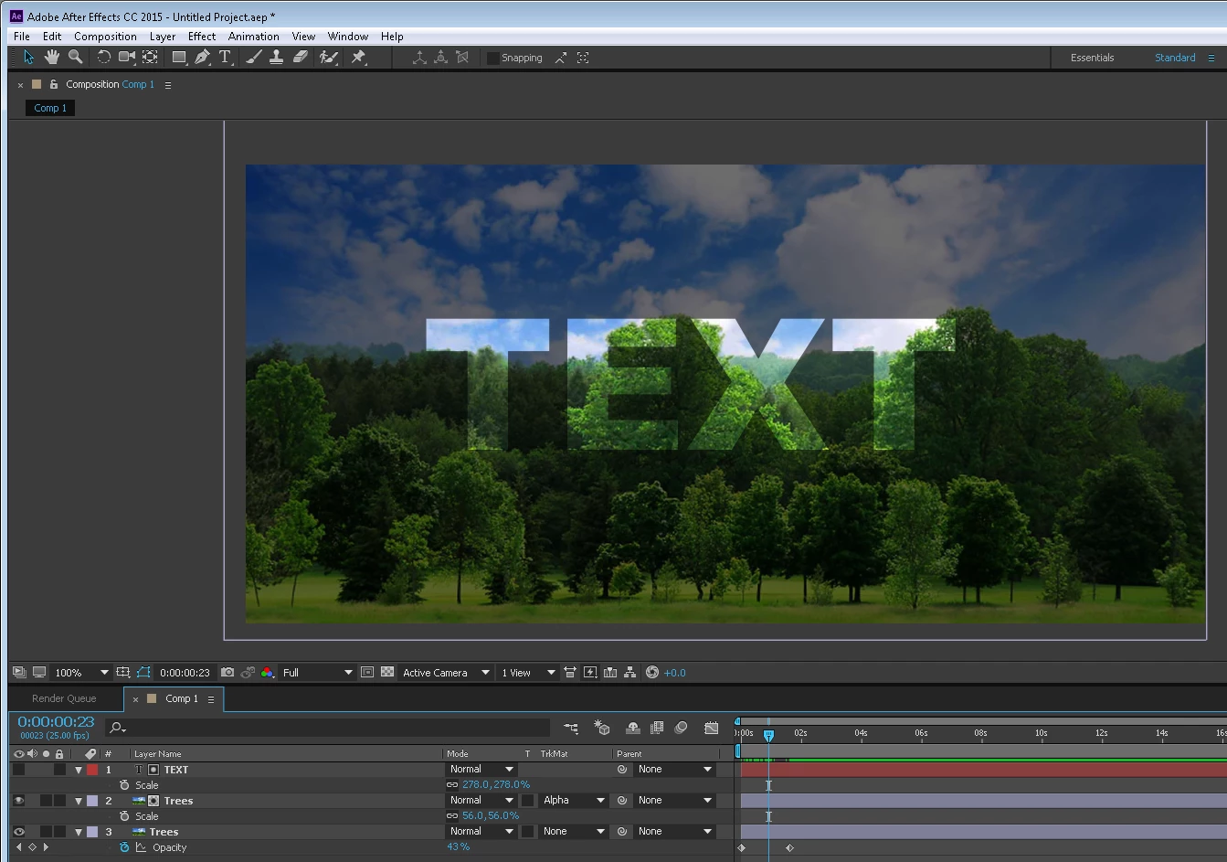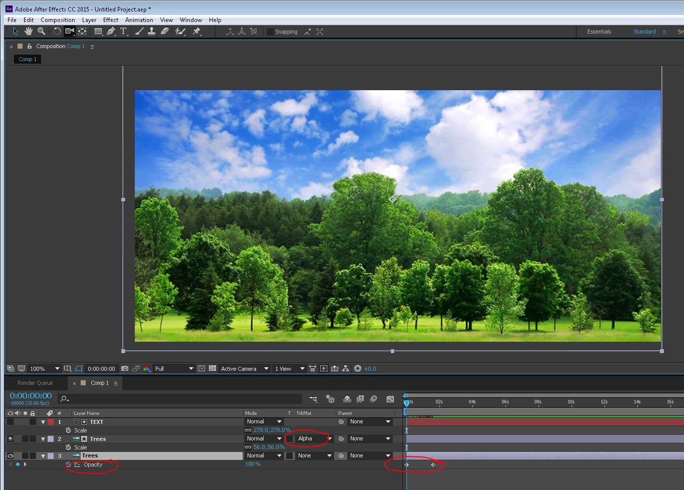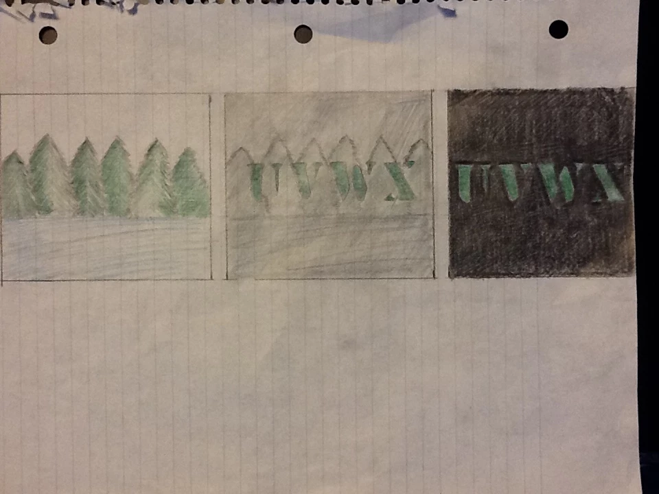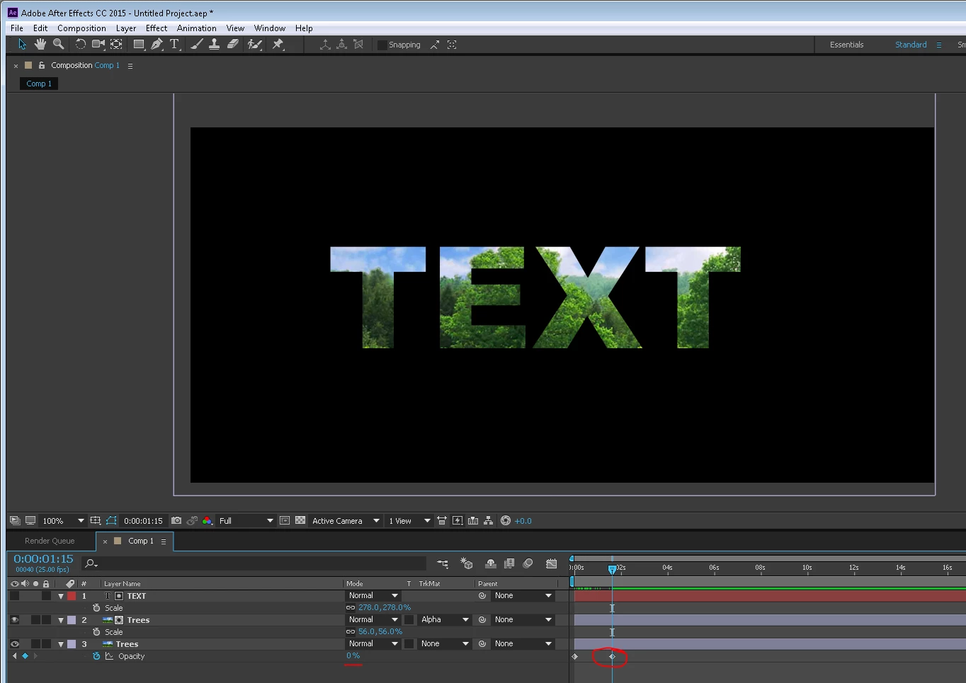 So, after taking some video of zooming into a treeline I had planned to freeze on a closeup of them, which would then start to fade to black except for the text which would remain the color of the actual trees. After some time looking at the various options I can't quite figure out how to get this to work. Here is a picture to help.