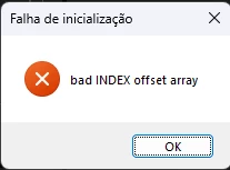 O erro é esse: Falha de inicialização: bad index offset array