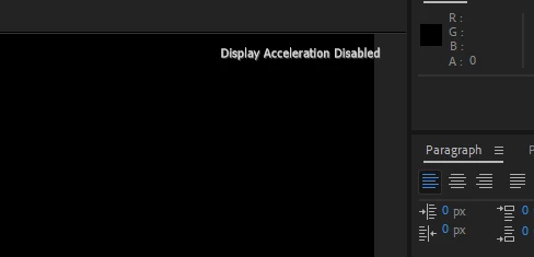 If you're running into a problem where After Effects displays a message on the Composition panel that says Display Acceleration Disabled, follow the suggestions given in this post to fix the problem.