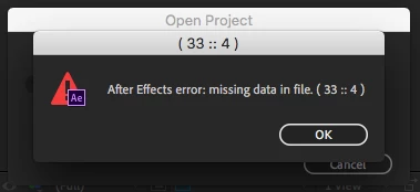 Even though my project was fine while I was working on it in AE2020, when I save it, and try to reopen, it keeps giving me this error :