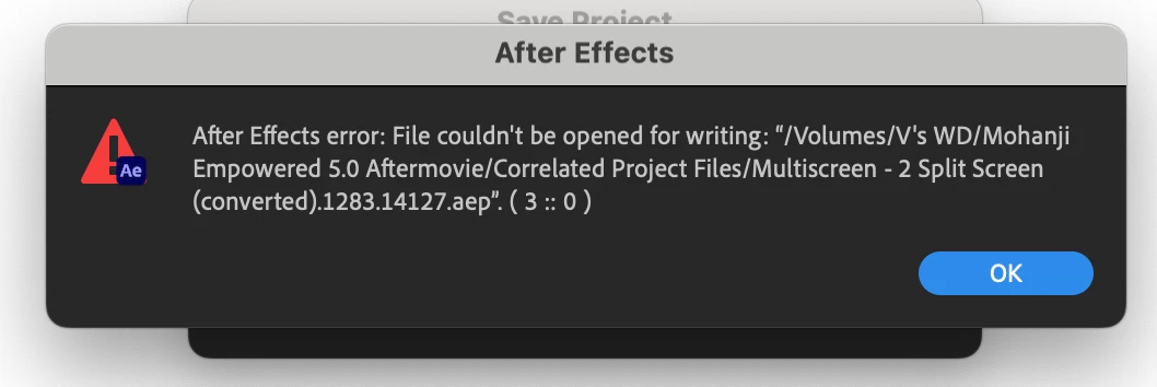I have checked the entire path's permissions and everything is read and write. I have checked the application after effects and its permissions are also read and write.