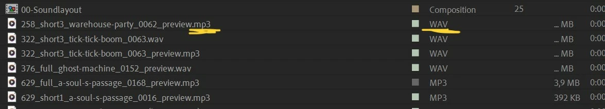 Hi! I've got these watermarked audio preview mp3s, but when i am replacing them with the WAV files i now bought the filename stays the same in the project window. The media is really replaced, i can tell beacause the watermarks are gone, and when i say "reveal in explorer" it shows me the WAV file, but it still says "preview.mp3" in the project window. This MUST be a bug in 23.6....