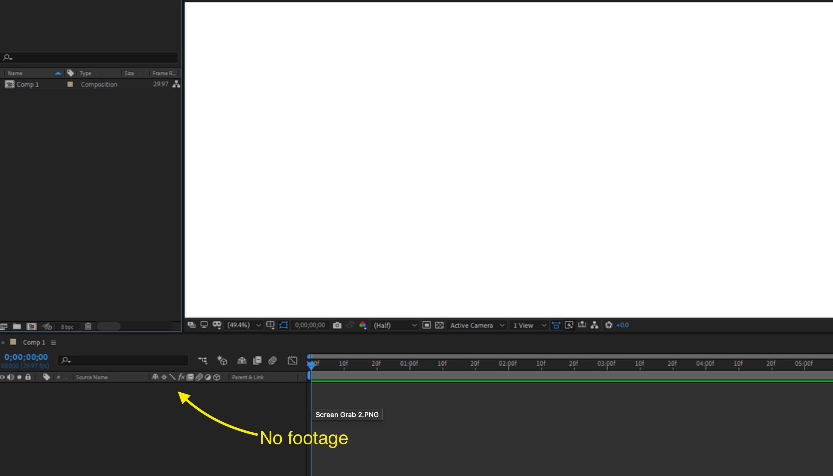 I am attempting to work in Adobe After Effects for the first time, but I am running into a problem. I'm attempting to follow along withe built-in tutorial, but the footage is not rendering in my preview window (see first screenshot). Assuming this was an issue with the rendering, I changed it from Mercury GPU Accelation (OpenCL) to Mercury Software Only, and now my preview window is just a white screen (see second screenshot). Any advice is greatly appreciated!!