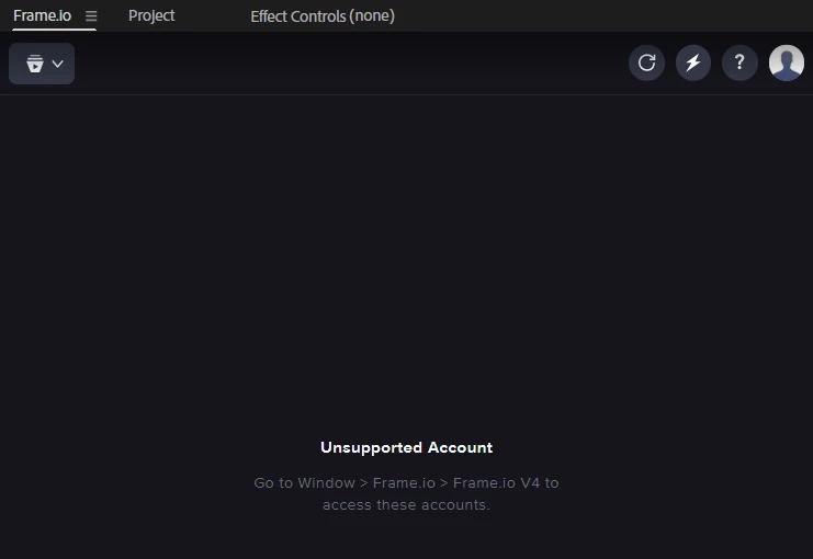I have a project in Frame.io but when trying to access it in AE, it just shows nothing nad it’s saying “Unsupported account”