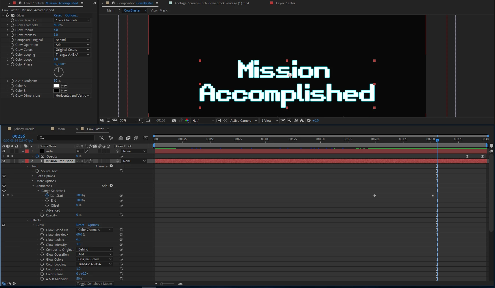 It looks fine in After Effects, and I can even see it look correct while it is rendering in Adobe Media Encoder. However, when I open the final mp4, the text only shows up as Cyan, and the glow effect is not applied.