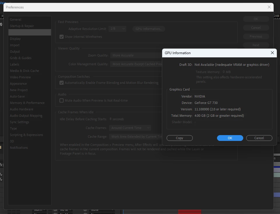 I am using After Effect CC 2015 in my Windows 10 OS. I am facing issue with enabling Ray tracing option present in Edit>>Prefrence>>Video Preview.