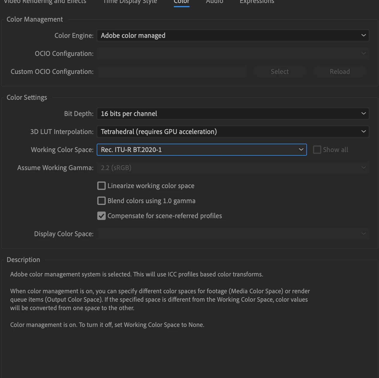 If I import it into AE (16-bit project) the color profile assigned to it is: REC. 2100 PQ (and it won't let me change it)