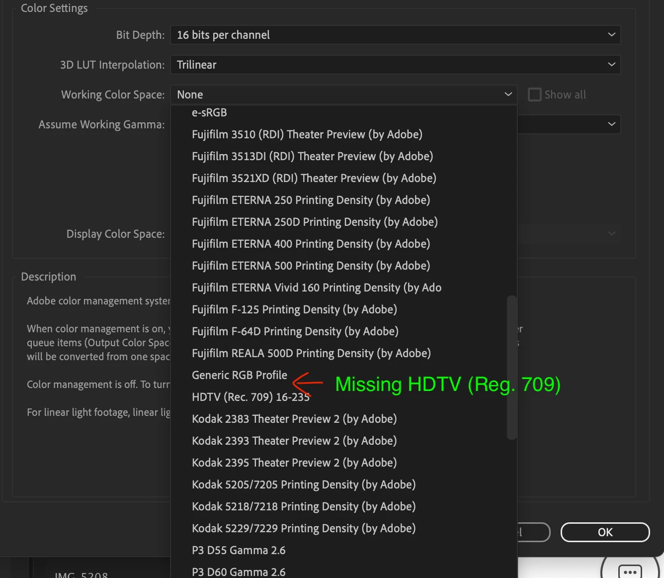HDTV (Rec. 709) working color space missing