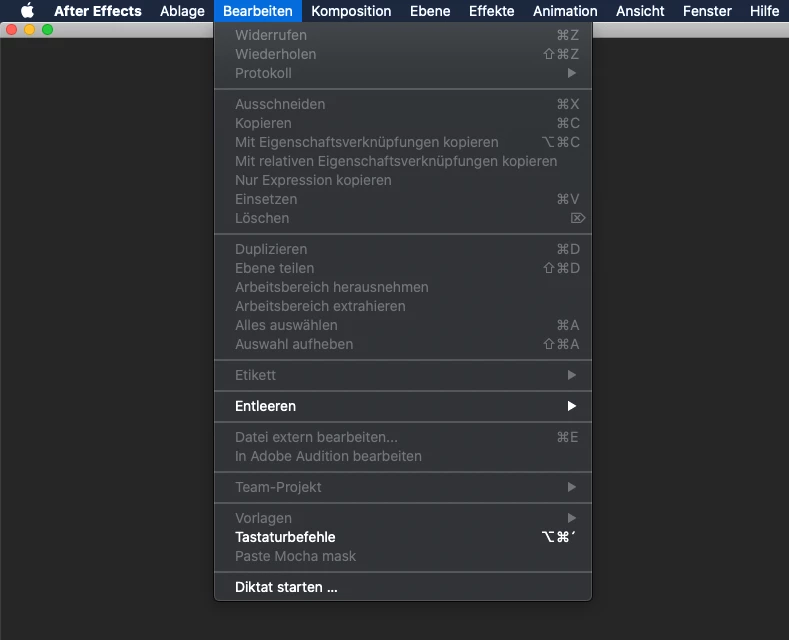 Hi im using AE for years and i had my fair share of trouble shooting to do but this one is new and nothing helped so far. I started AE today and it is absolutely blank and almost every menu text is greyed out.