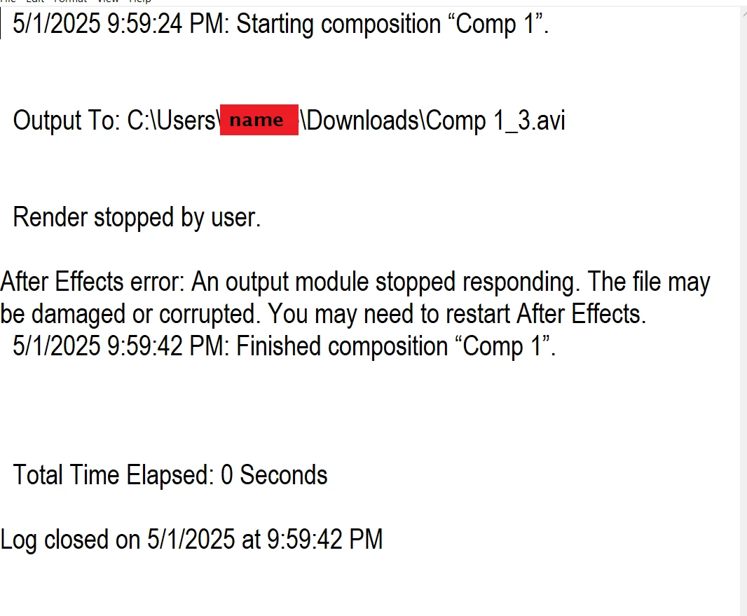I'm editing a 25 second video and no matter what I do I'm unable to render my project. Everything seems fine and working in the preview. but when I try to render it in the render queue it only renders the first second and it's stuck there forever, so I stop it and the warning pops up.